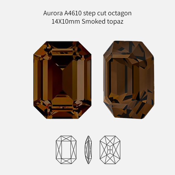 Aurora Crystal 14x10mm Step Cut Octagon 4610 Smoked Topaz color-4pcs pack