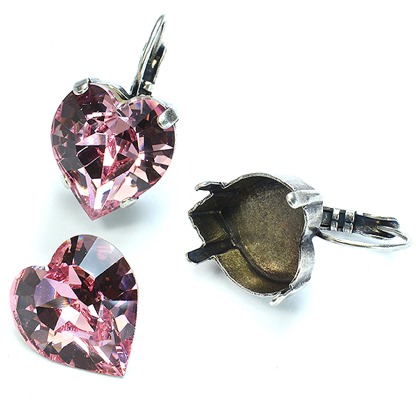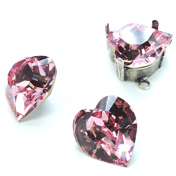 15.4-14mm Heart Swarovski 4884 Light Rose color