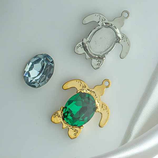 Oval 10X8mm Turtle Pendant base with one top loop