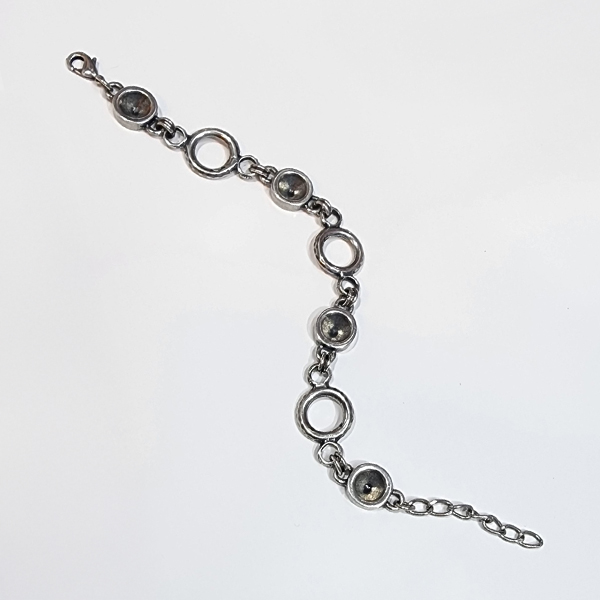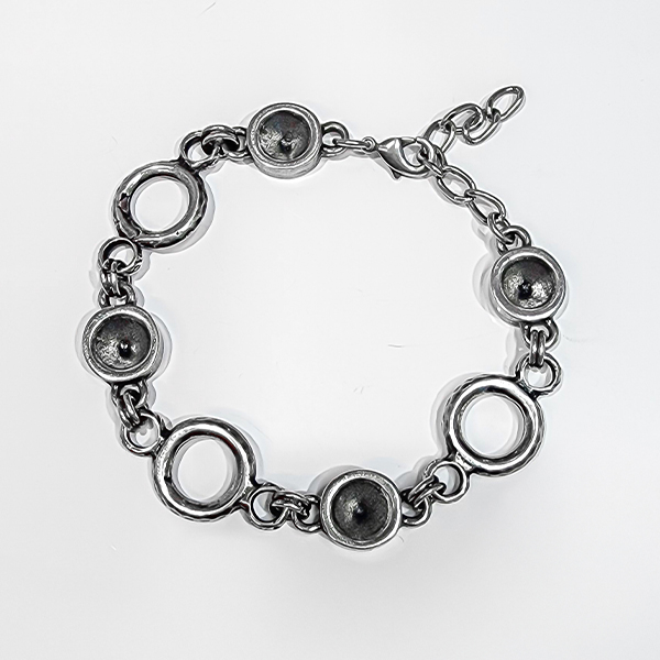 Bracelet base almost finished with chaton 1088 39ss/8mm and Round hollow hammered metal connector