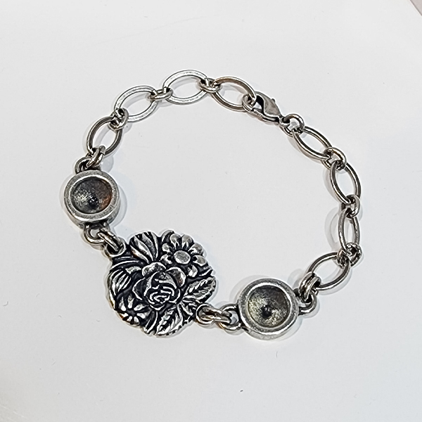 Bracelet base almost finished with chaton 1088 39ss/8mm for glueing and Flowers metal elements