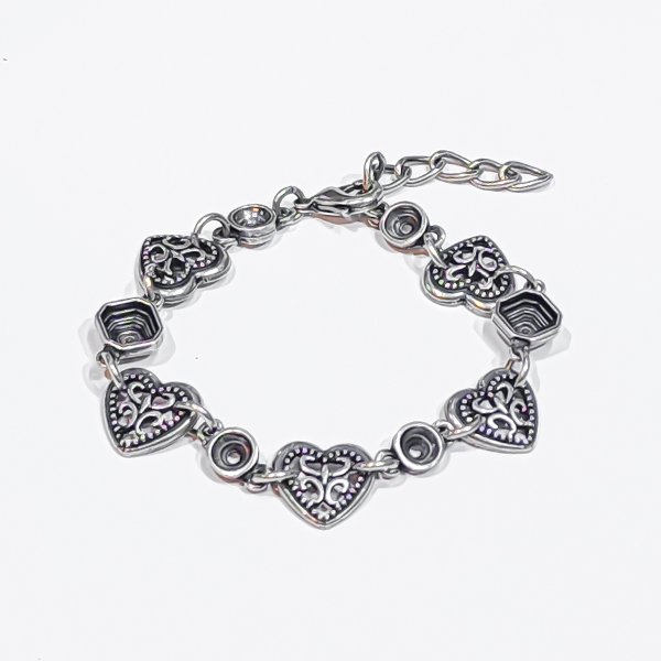 Almost finished bracelet with 24ss and Imperial 4480 heart metal casting elements