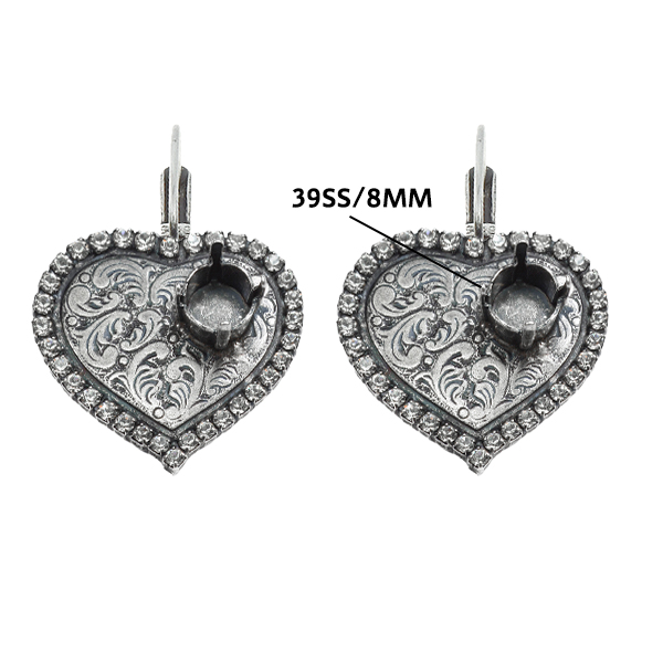 Decorated Vintage Heart shaped Lever back earrings base with 39ss settings and Rhinestoness