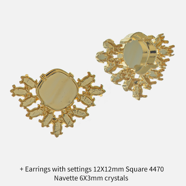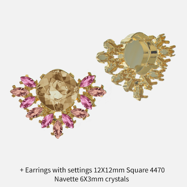 GITA's earring bases perfectly fit pointed-back Crystals, Flatbacks & Gemstones, including Swarovski, Preciosa & Aurora, etc. Start by choosing a metal base - and its plating color, then select matching crystals, rhinestones, gemstones, etc., and create professional jewelry.