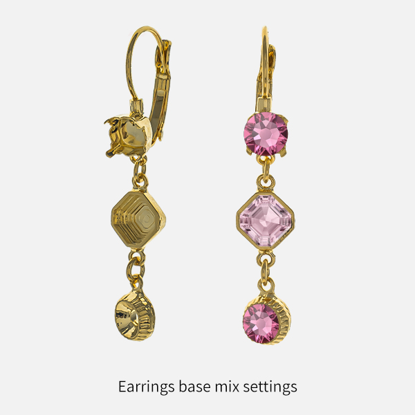 GITA's earring bases perfectly fit pointed-back Crystals, Flatbacks & Gemstones, including Swarovski, Preciosa & Aurora, etc. Start by choosing a metal base - and its plating color, then select matching crystals, rhinestones, gemstones, etc., and create professional jewelry.