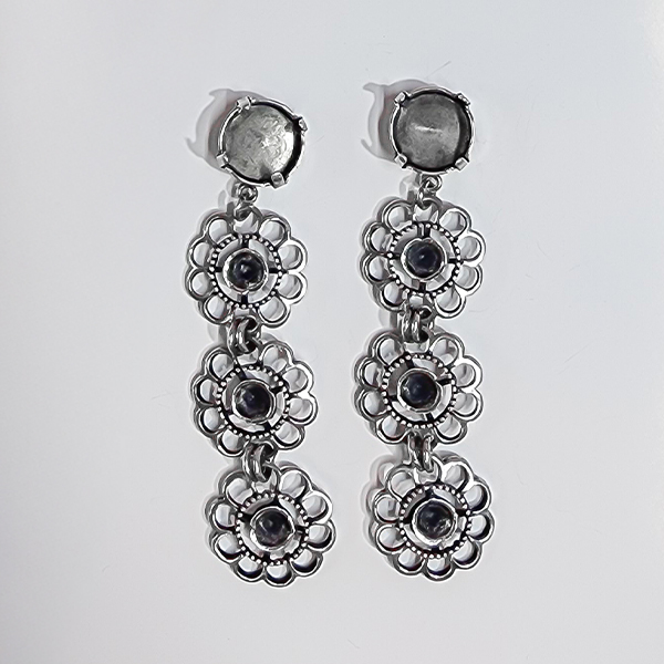Earrings Stud Chamomile metal casting with 12mm Rivoli and 24ss chaton