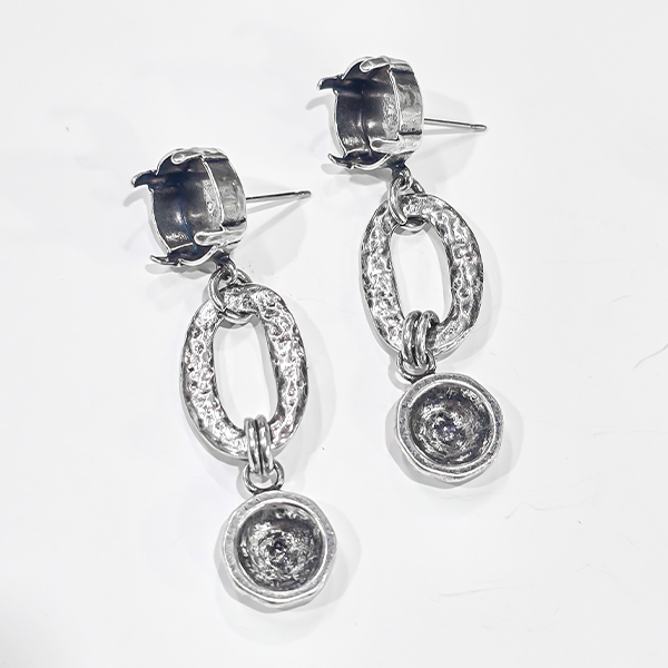 Earrings Stud 39ss chaton and 12mm Rivoli and Oval hollow metal element