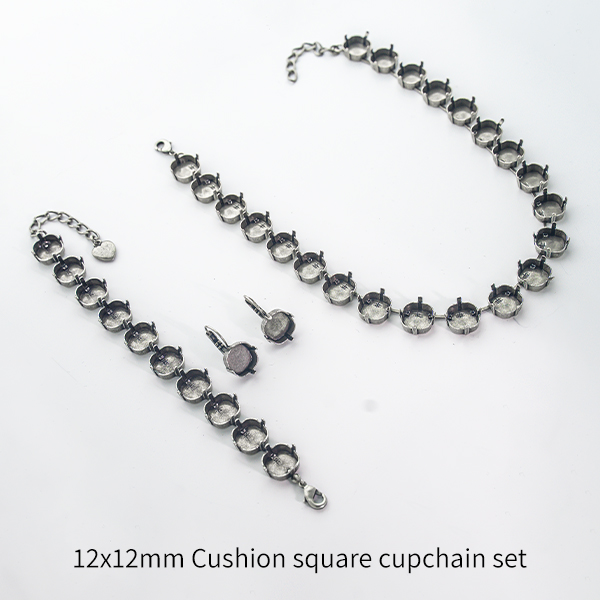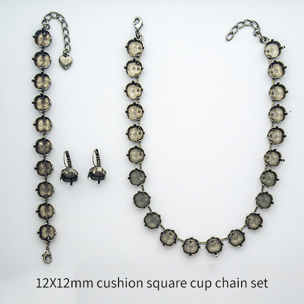 *LIMITED* SET 12x12mm Square empty cup chain Necklace + Bracelet + Earrings