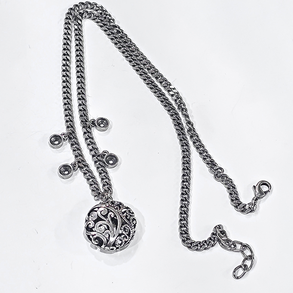 Filigree Round fluffy metal element with 24ss dangling settings for gluing and gourmet chain